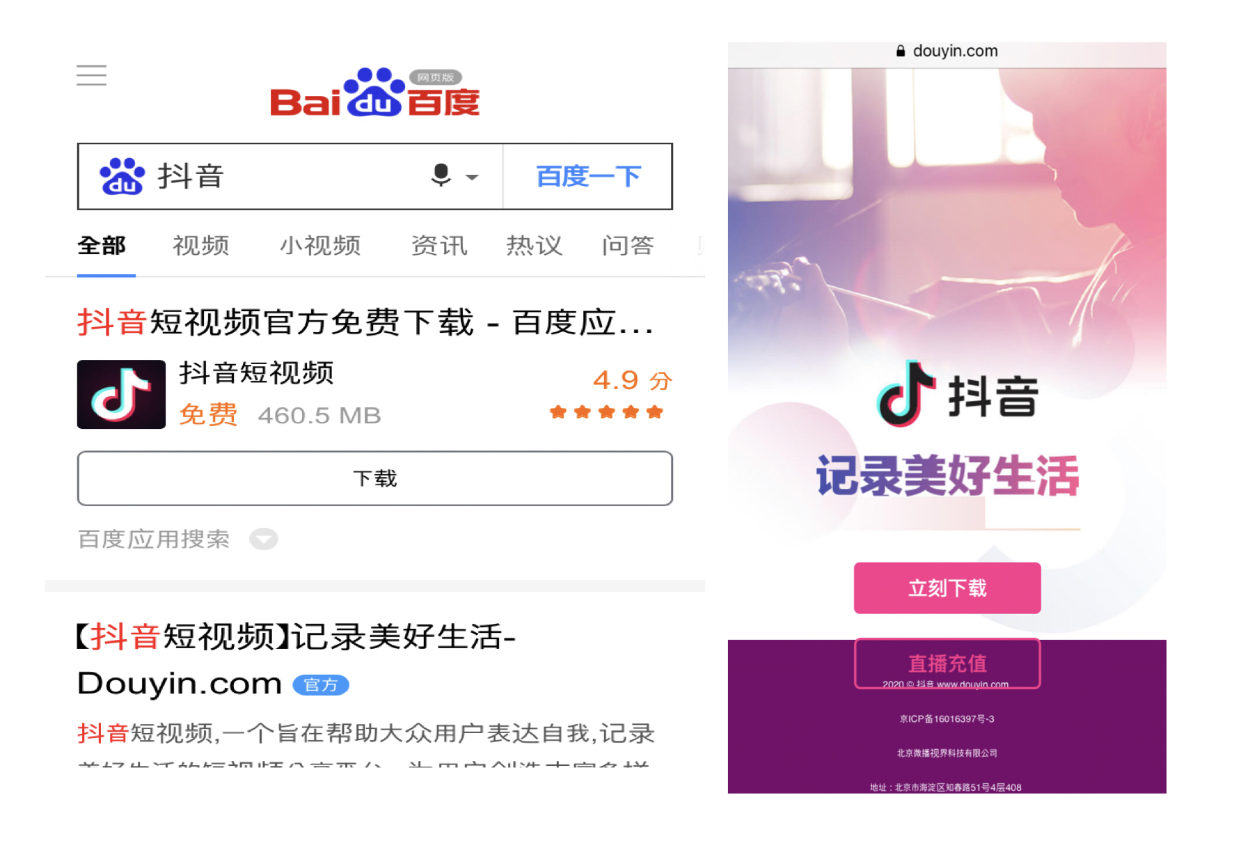 그다음 douyin 혹은 抖音을 검색해주신 후 공식 사이트에 들어가면