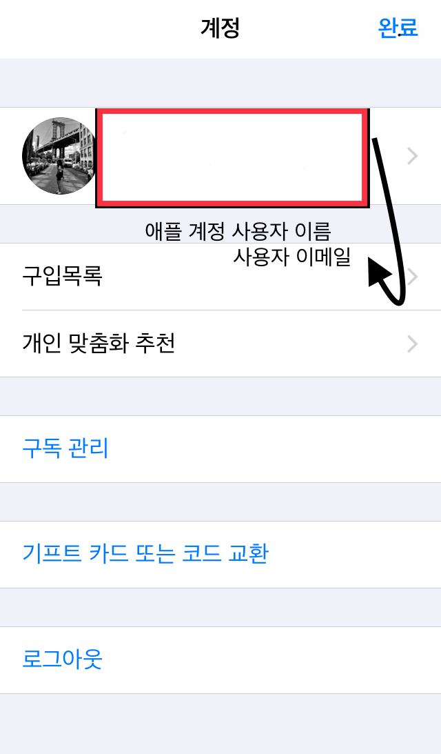 애플 계정 프로필 사진을 눌러주세요~!