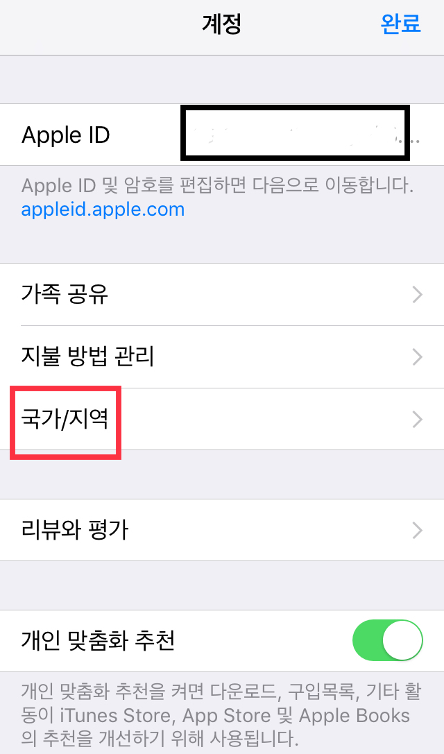 다음, 국가/지역을 눌러주세요~!